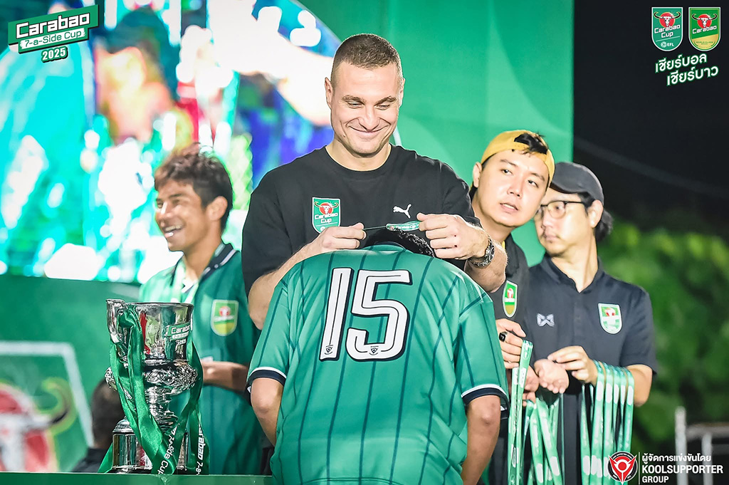 นายกมลดิษฐ สมุทรโคจร รองกรรมการผู้จัดการ บริษัท คาราบาวกรุ๊ป จำกัด (มหาชน) กล่าวว่า “Carabao 7-a-Side Cup เป็นแพลตฟอร์มสำคัญในการขับเคลื่อนกลยุทธ์ Sports Marketing ของบริษัท โดยมุ่งเน้นการสร้างการมีส่วนร่วมกับชุมชน ควบคู่กับการต่อยอดไปสู่ประสบการณ์ระดับโลก การเชื่อมโยงจากการแข่งขันในประเทศไปสู่เวที Carabao Cup ที่ประเทศอังกฤษ ภายใต้แนวคิด “แชมป์ไปดูแชมป์” ช่วยสร้าง Brand Experience ที่แตกต่าง และยกระดับภาพลักษณ์ของแบรนด์ในระดับสากล บริษัทฯ จะยังคงพัฒนาแพลตฟอร์มนี้อย่างต่อเนื่อง เพื่อเสริมสร้าง Brand Equity และสนับสนุนการเติบโตของธุรกิจในระยะยาว” นายกมลดิษฐ กล่าว